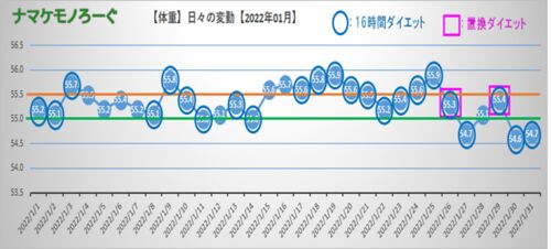 2018年4月から始めたオーバー50才、中高年女性のダイエット。 1年間で約6㎏減量(60.2kg→54.3kg)したあとは、2年半以上、リバウンドと闘いながら54㎏台の維持に努めています。 ここ数ヵ月は1日・24時間の内、食べない時間を16時間取る「16時間ダイエット…
